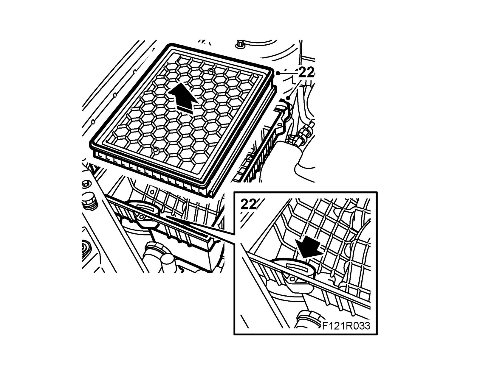 22. Remove the air cleaner cover and the air cleaner. Detach the inlet hose and remove the air cleaner casing.