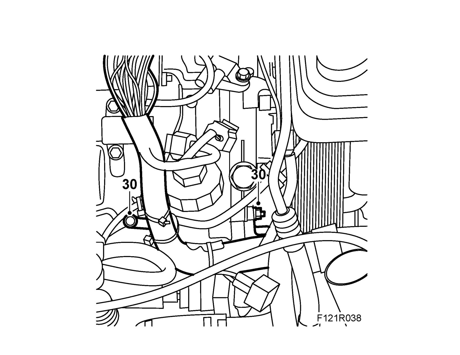 27. Unplug A/C pressure sensor connector, connector to coolant temperature sensor, engine control module, bypass valve solenoid valve, throttle body, intake manifold pressure sensor, atmospheric pressure sensor, IDM module, oil pressure sensor and ground cable on engine control module.