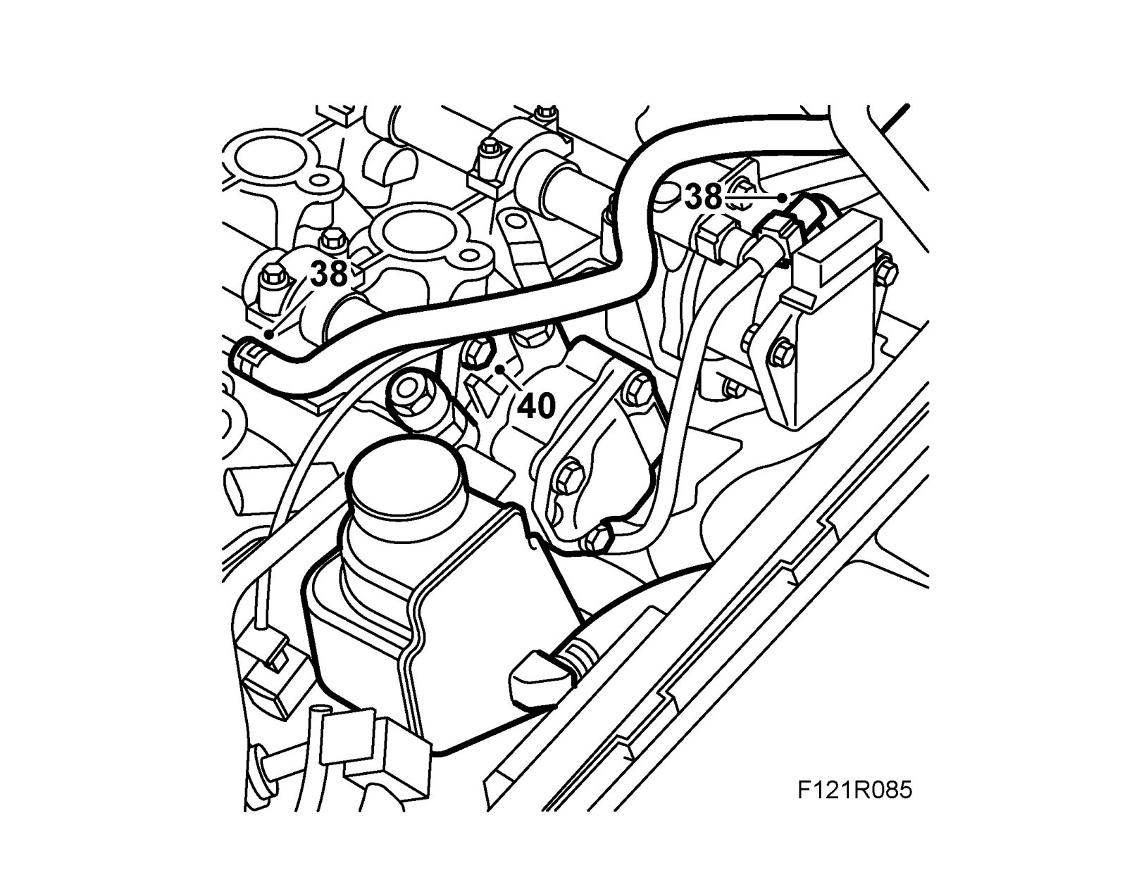38. Detach coolant hose from pipe on cylinder head. Detach vacuum hose from brake servo.