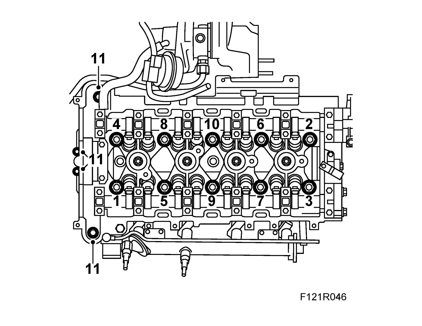 6. Fit the cylinder head according to the order shown in the illustration. Insert the bolts carefully. The threads in the cylinder block can be damaged if they are dropped rapidly.