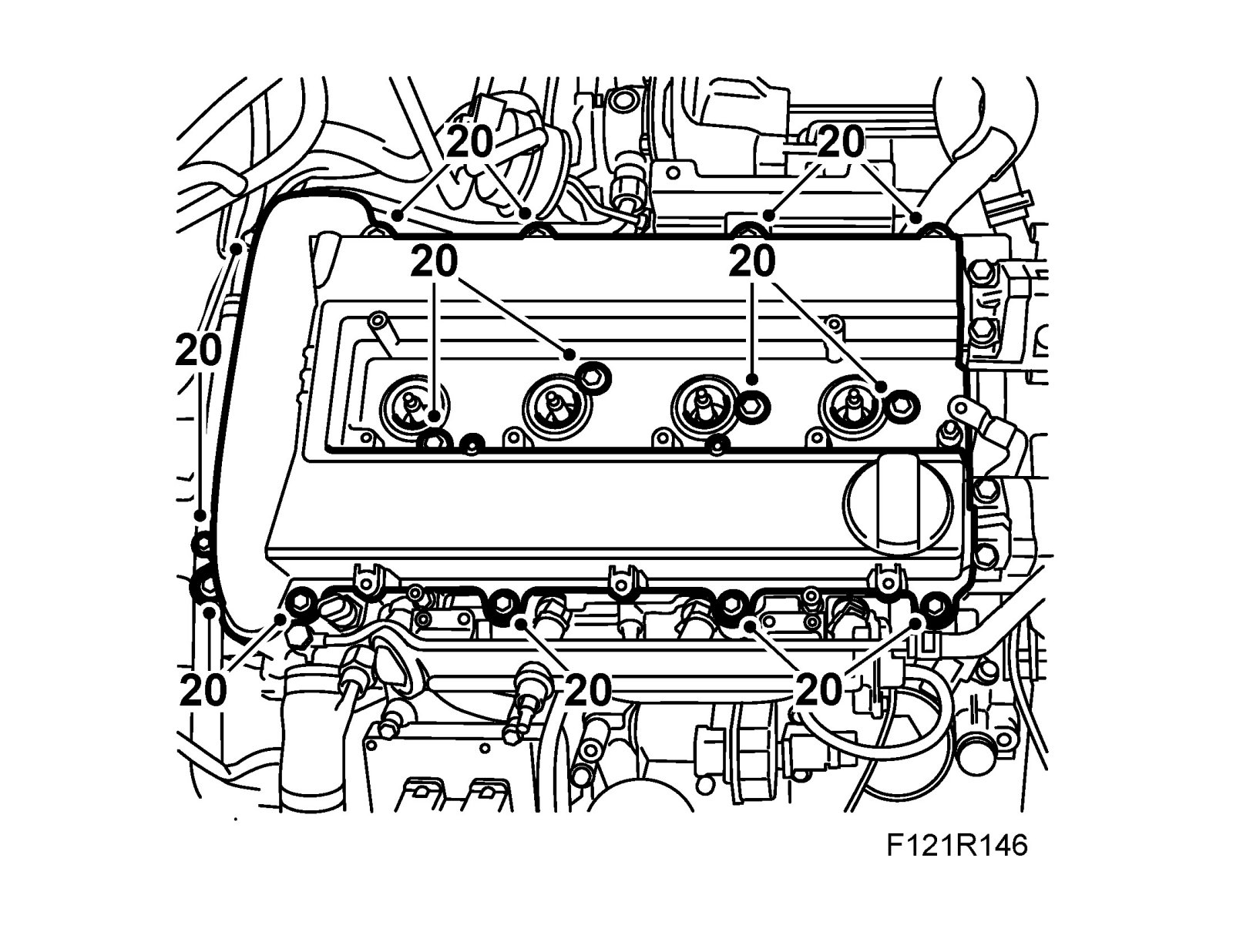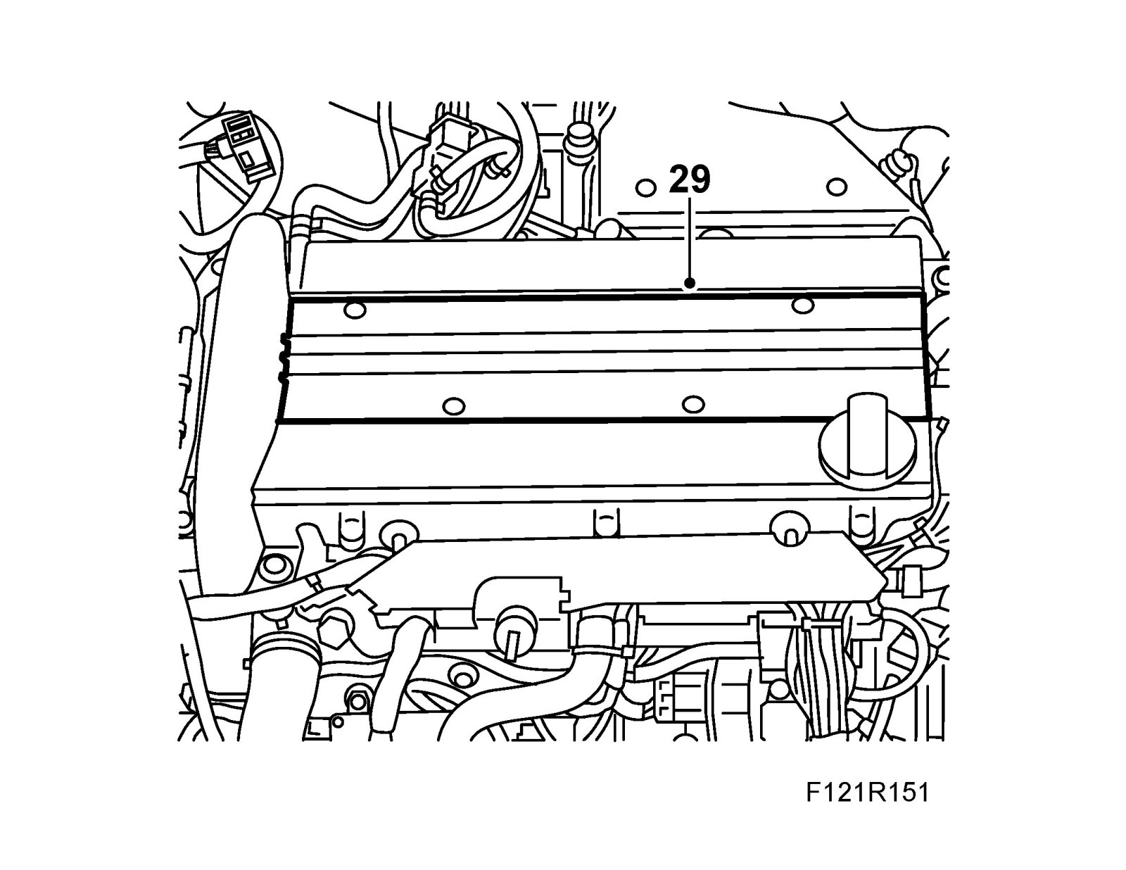 29. Detach the cable duct and bracket from the camshaft cover. Move away the engine wiring harness.