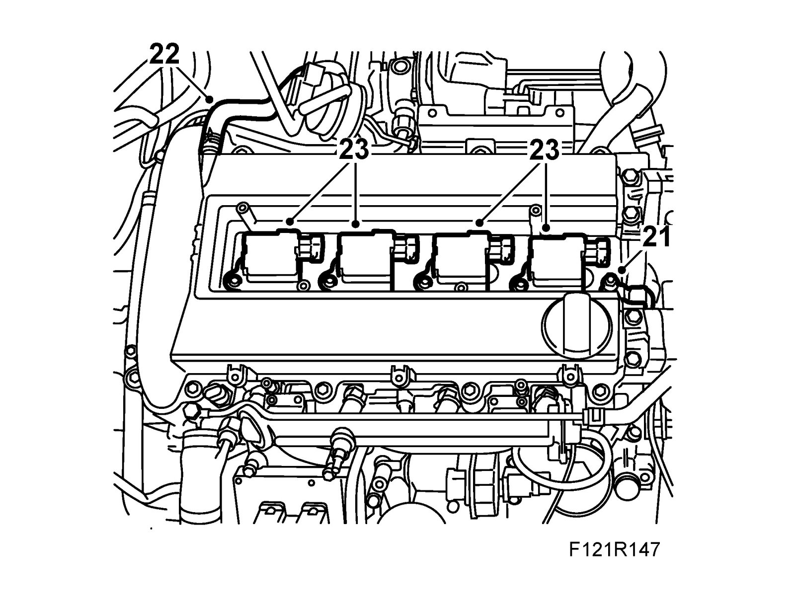 22. Connect the crankcase ventilation hose to the camshaft cover.