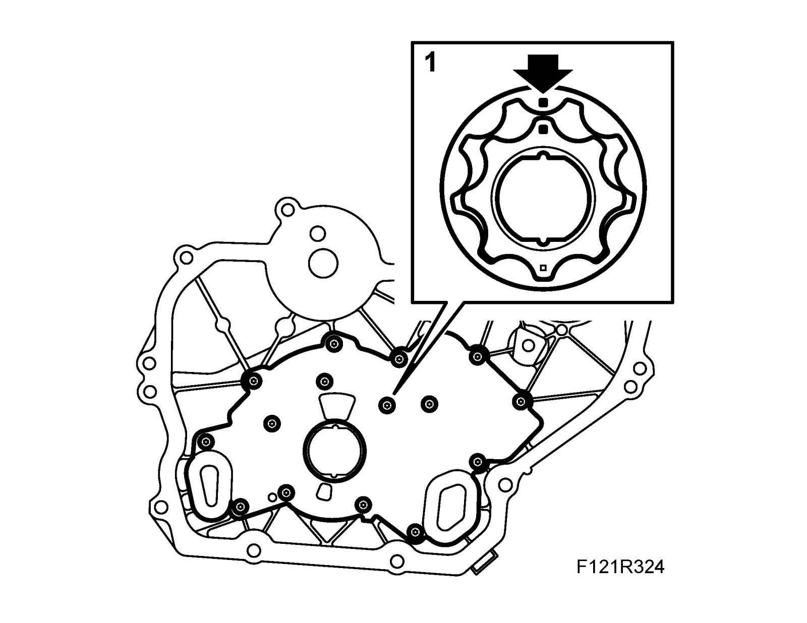 1. Fit the oil pump pinions. The markings on the pinions must be turned to the timing cover.
