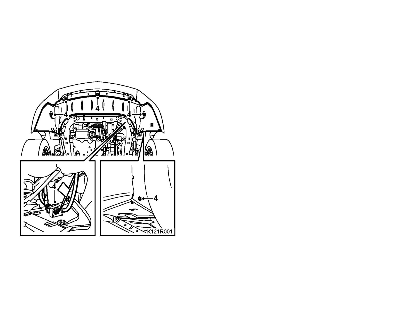 6. Remove the right wing liner and detach the front part of the left wing liner so that the subframe is free.