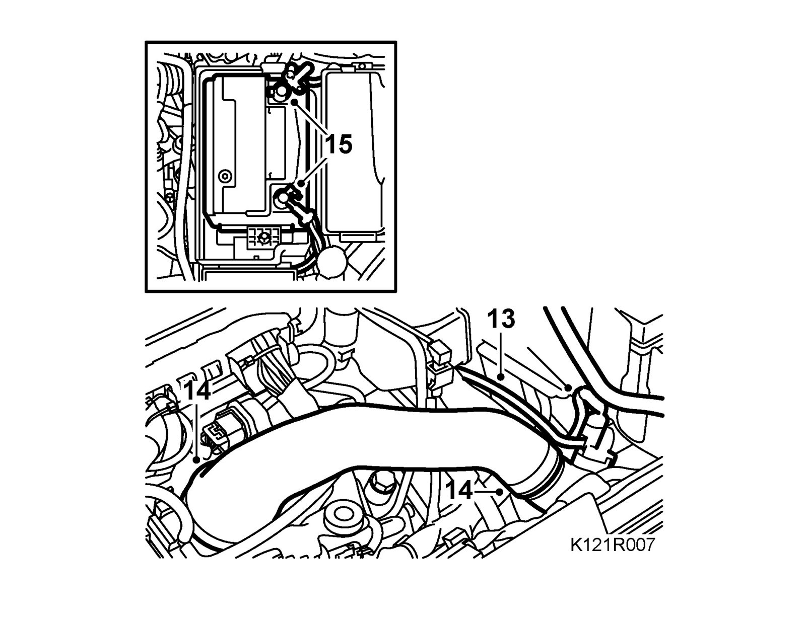 14. Detach the charge air hose from the throttle body and the charge air pipe.