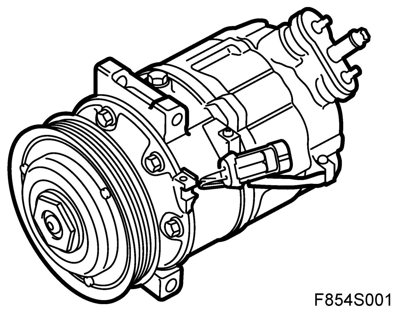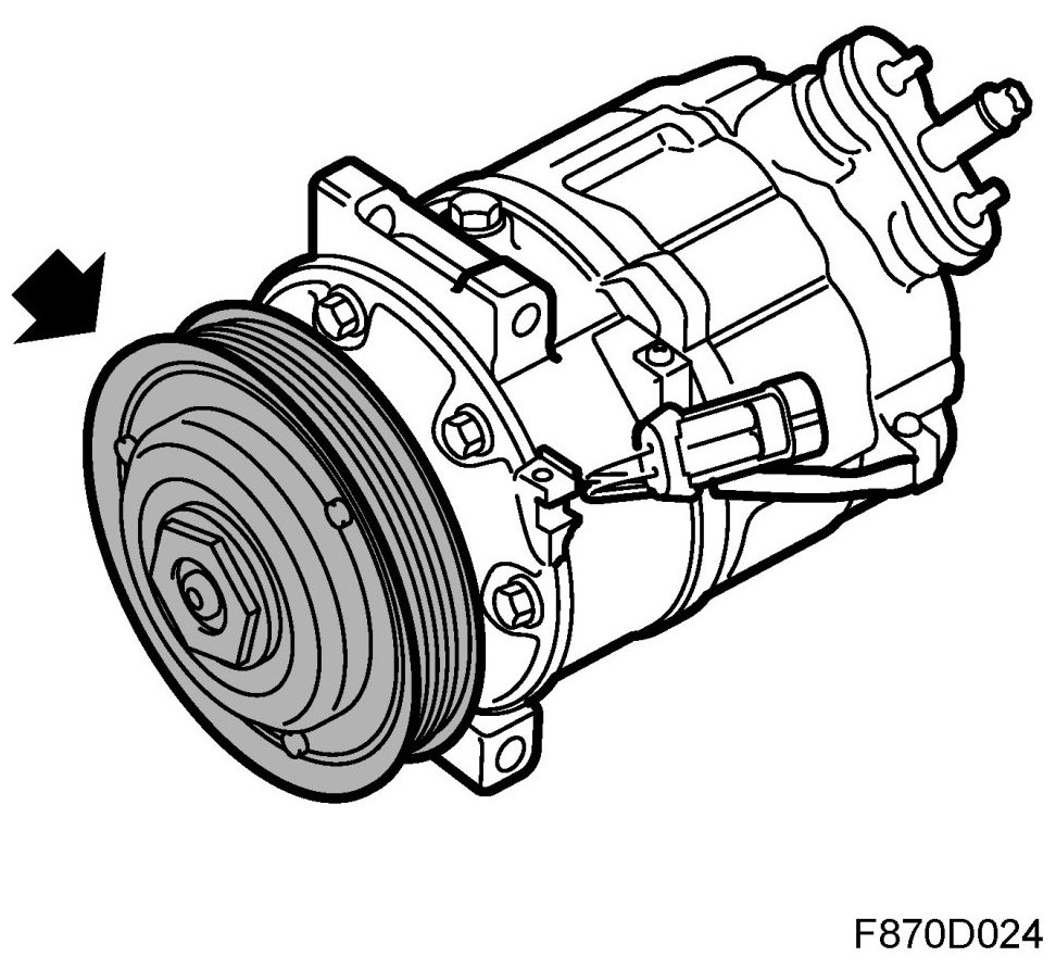 The compressor clutch consists of a coil, belt pulley and follower. When the coil is supplied with voltage, the belt pulley and follower are coupled together as one unit.