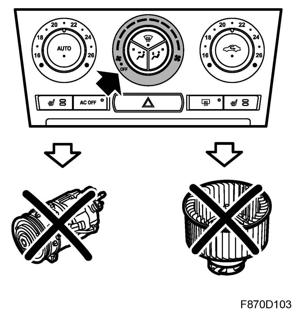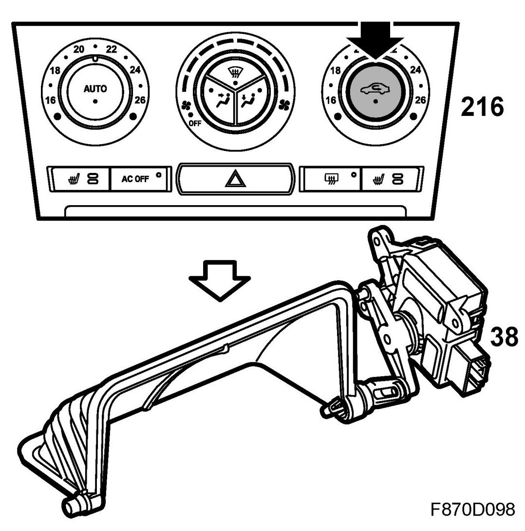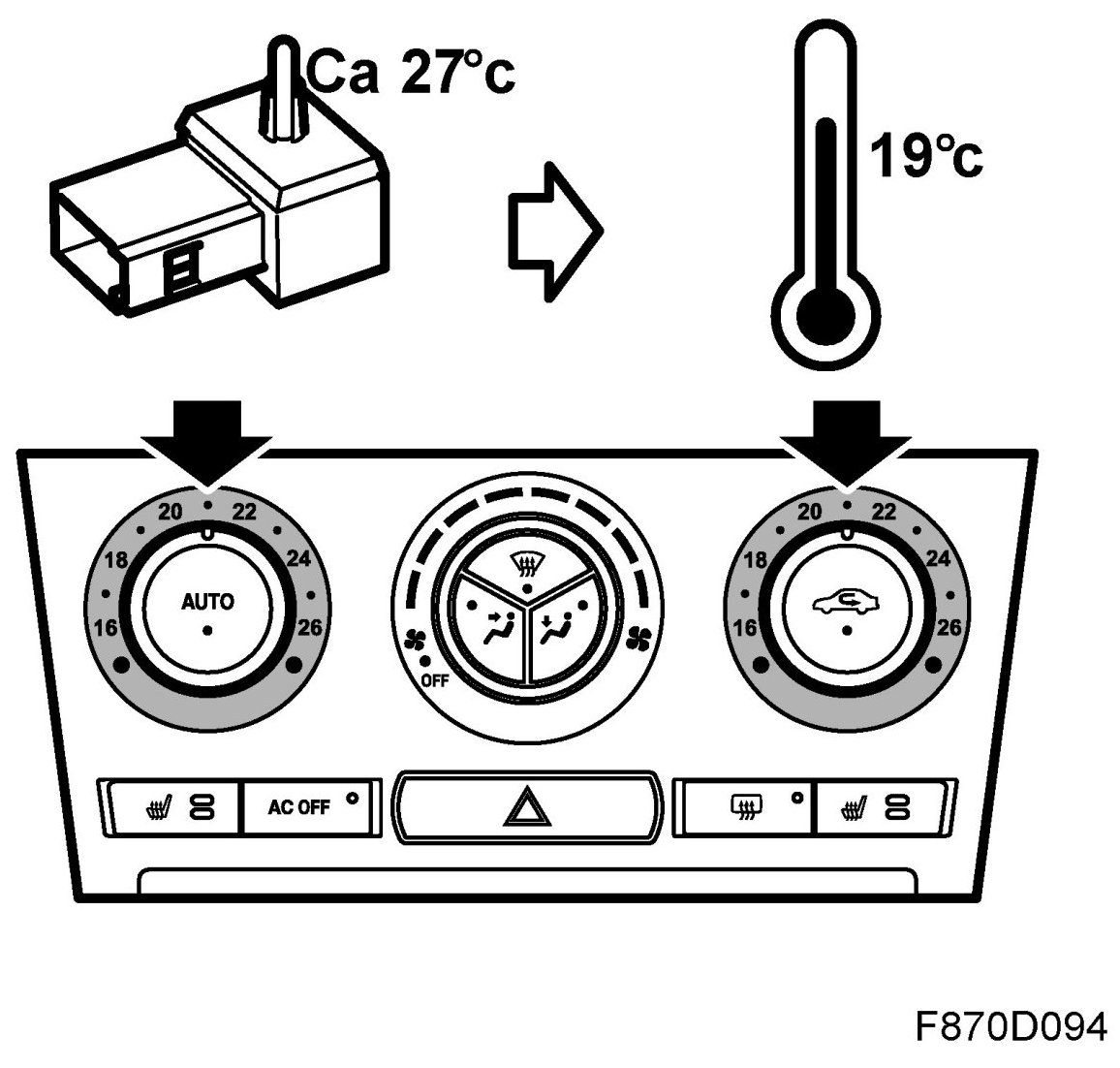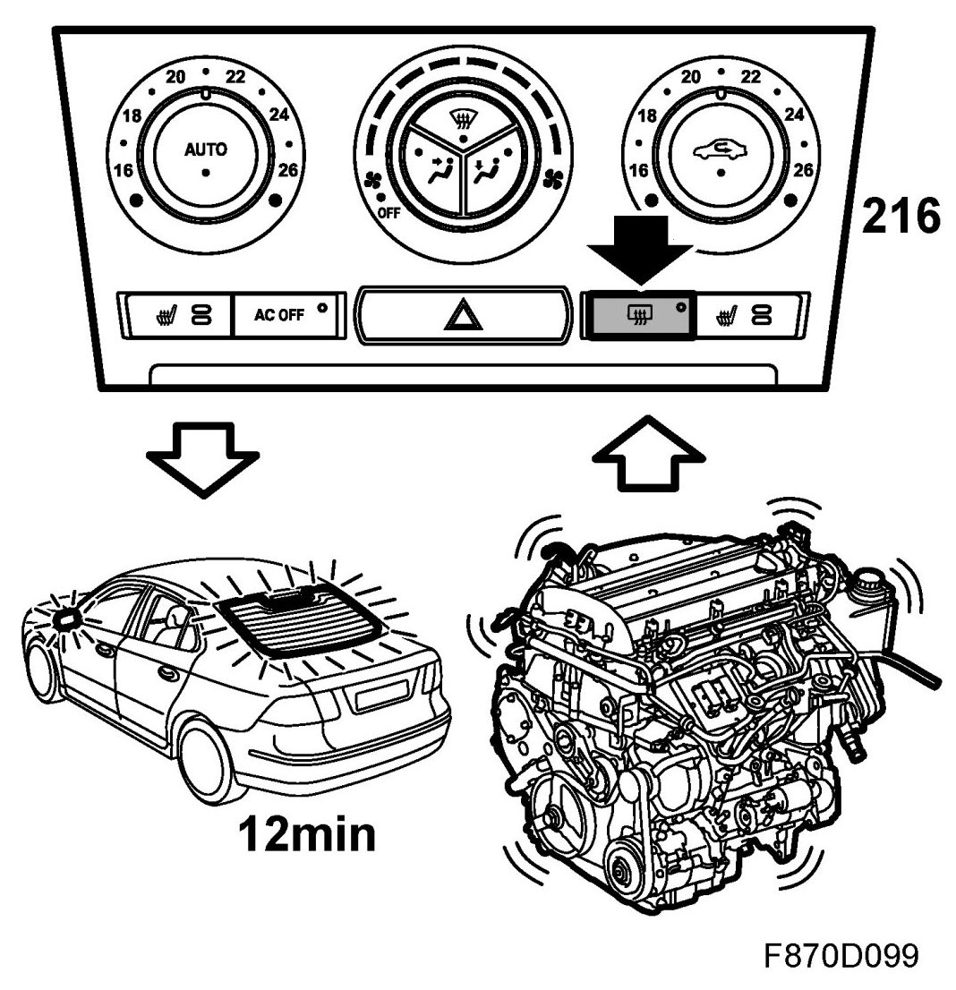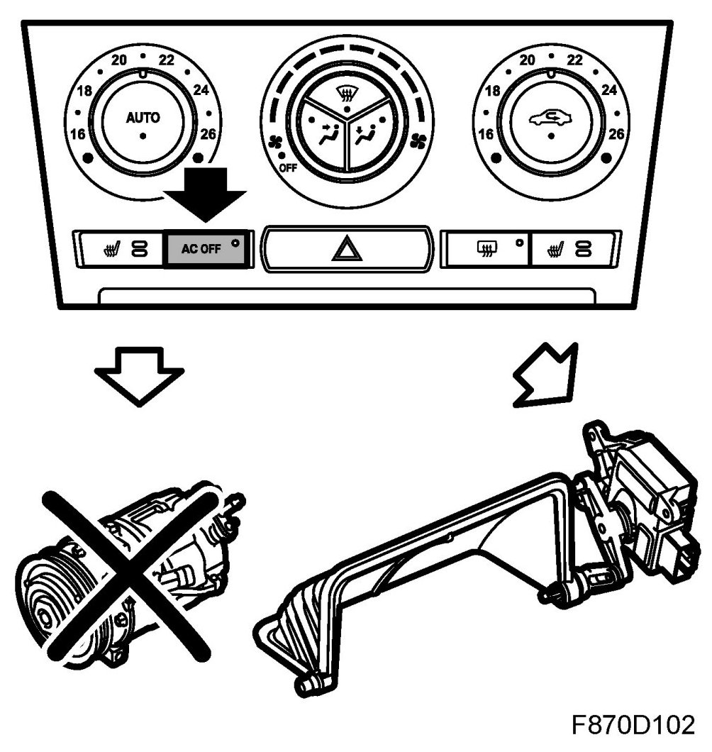 When the ignition is switched off, no buttons are operable, all stepping motors are stopped and recirculation off is selected after 10 seconds. Diagnostic communication is maintained if it was running when the ignition was switched off, but it cannot be restarted.