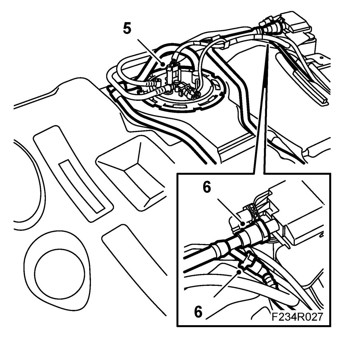4. On cars with ORVR, unplug the connector for the pressure sensor.