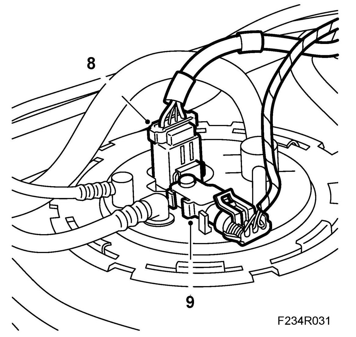 8. Plug in the fuel pump connector.
