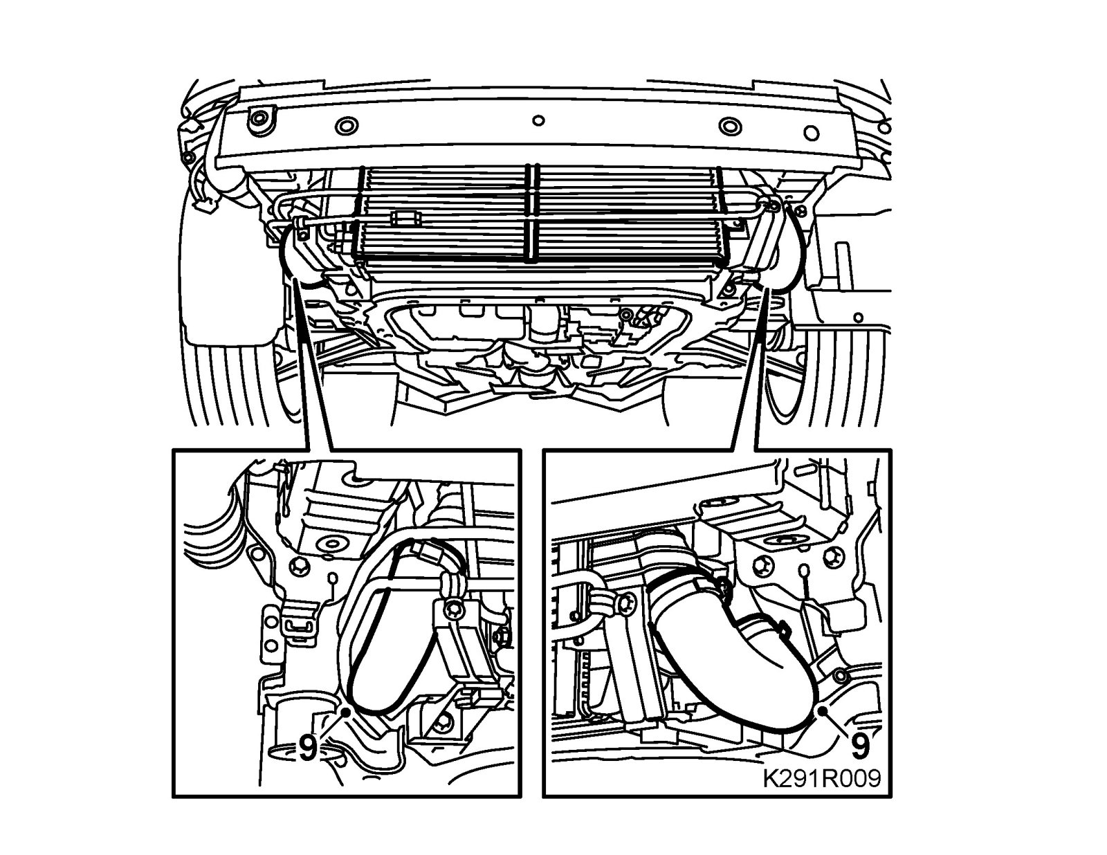 10. Remove the charge air cooler by carefully pulling it downwards.