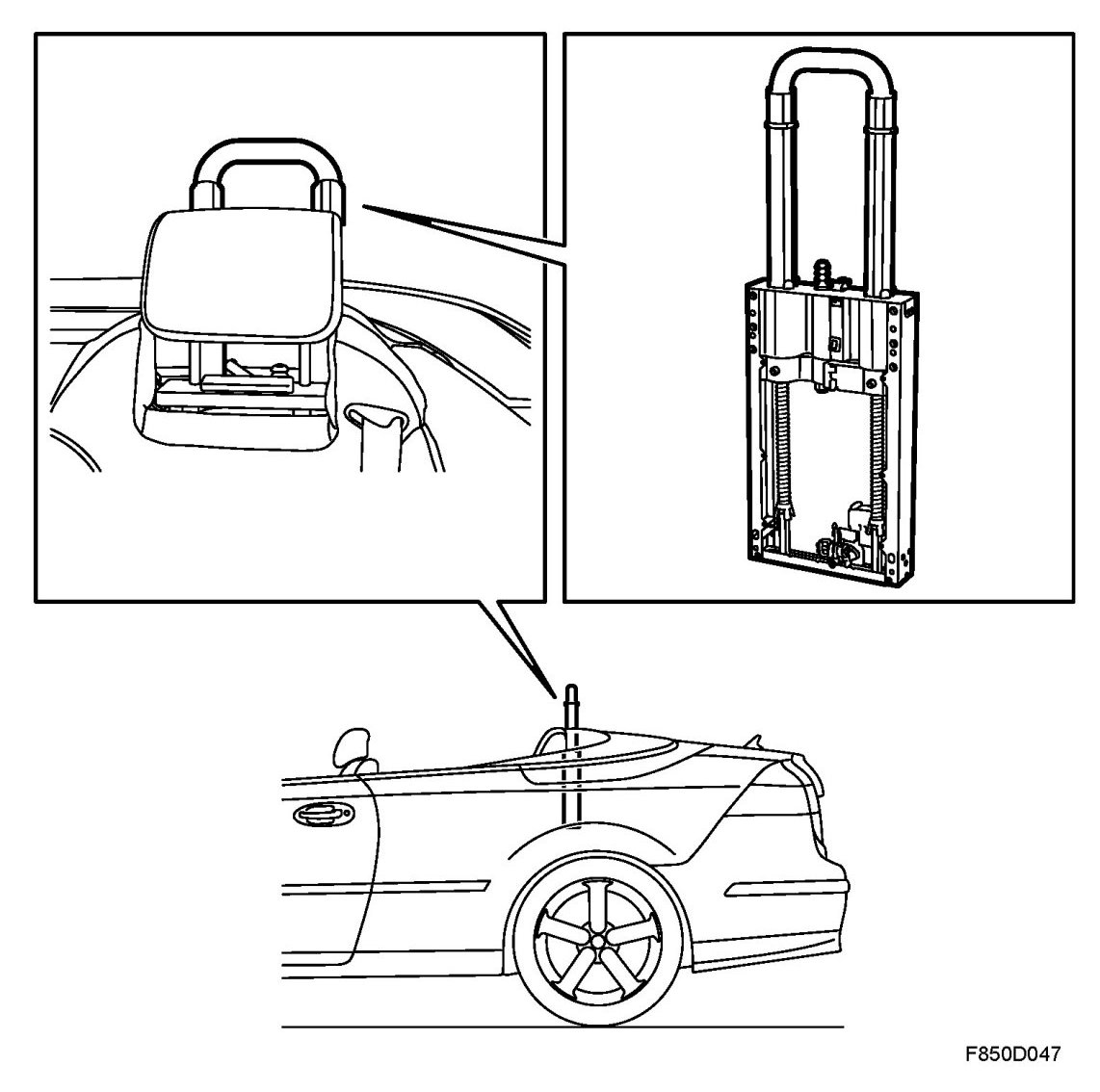 To improve safety in the event of a rollover accident, the car is fitted with roll bars which are activated by the car airbag control module (ACM). In a rollover accident, two roll bars are extended from behind the rear seat backrest to protect the passengers. The roll bars are part of the vehicle's passive safety equipment. The protection system with bows consists of two cassettes mounted behind the rear seat.