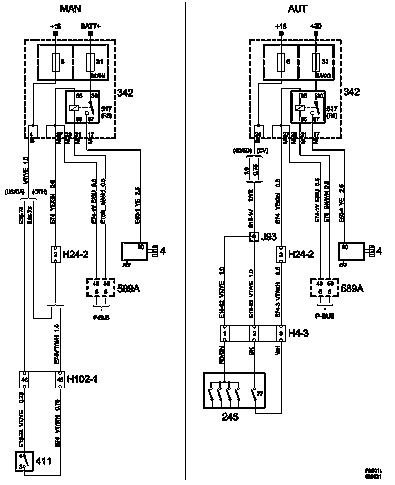 The diagrams for the power supplies that may be feeding this system (+30, +15, +54, +X, and +B) ) can be found at