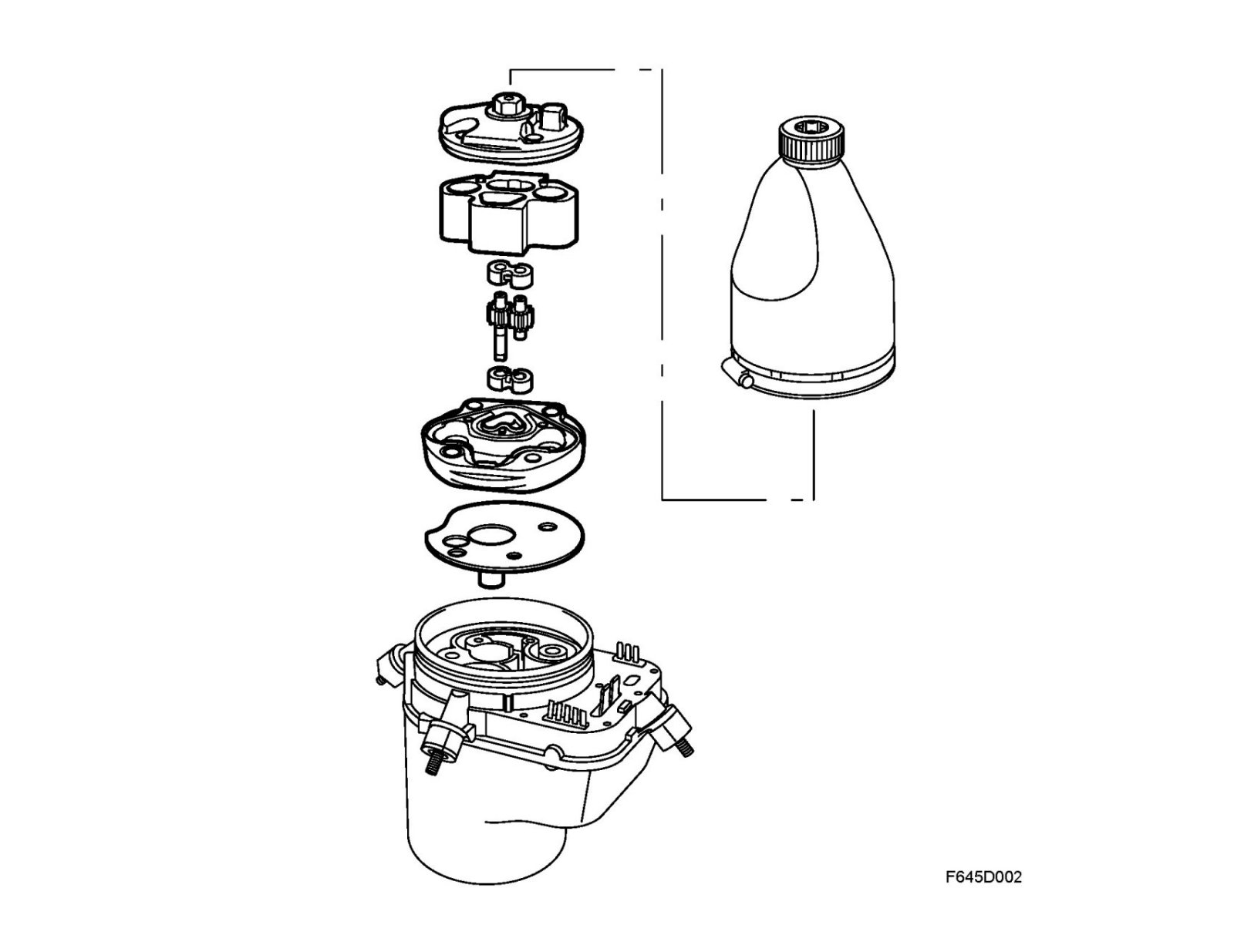 Gear pump driven by a DC motor. A temperature sensor is connected to the EHPS control module and measures the oil temperature continuously.