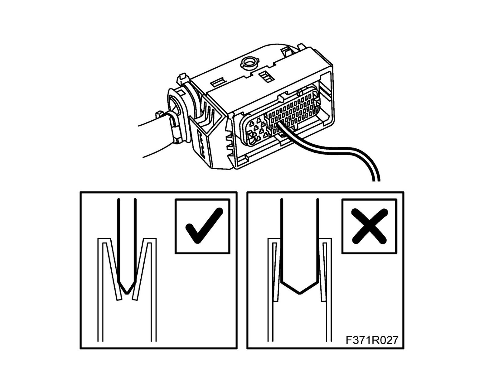 Use a test cable (part no. 86 12 731) of the correct size to avoid damaging the sleeves in the connector.