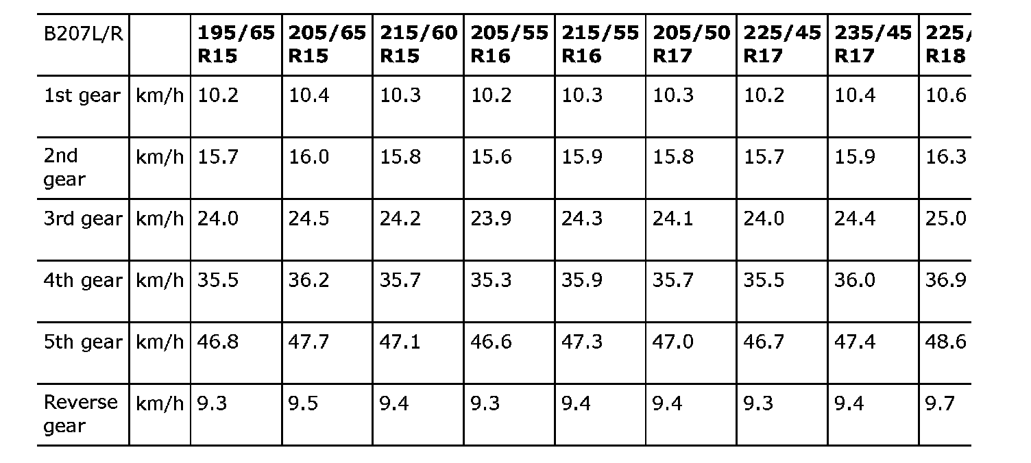 Speed at 1000 rpm. Torque converter gear ratio 1:1