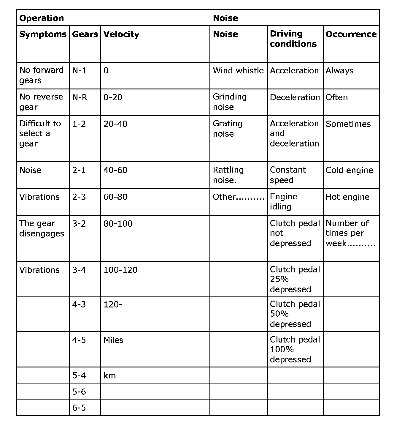 Check list, is filled in before changing transmissionNotes...................................................................................