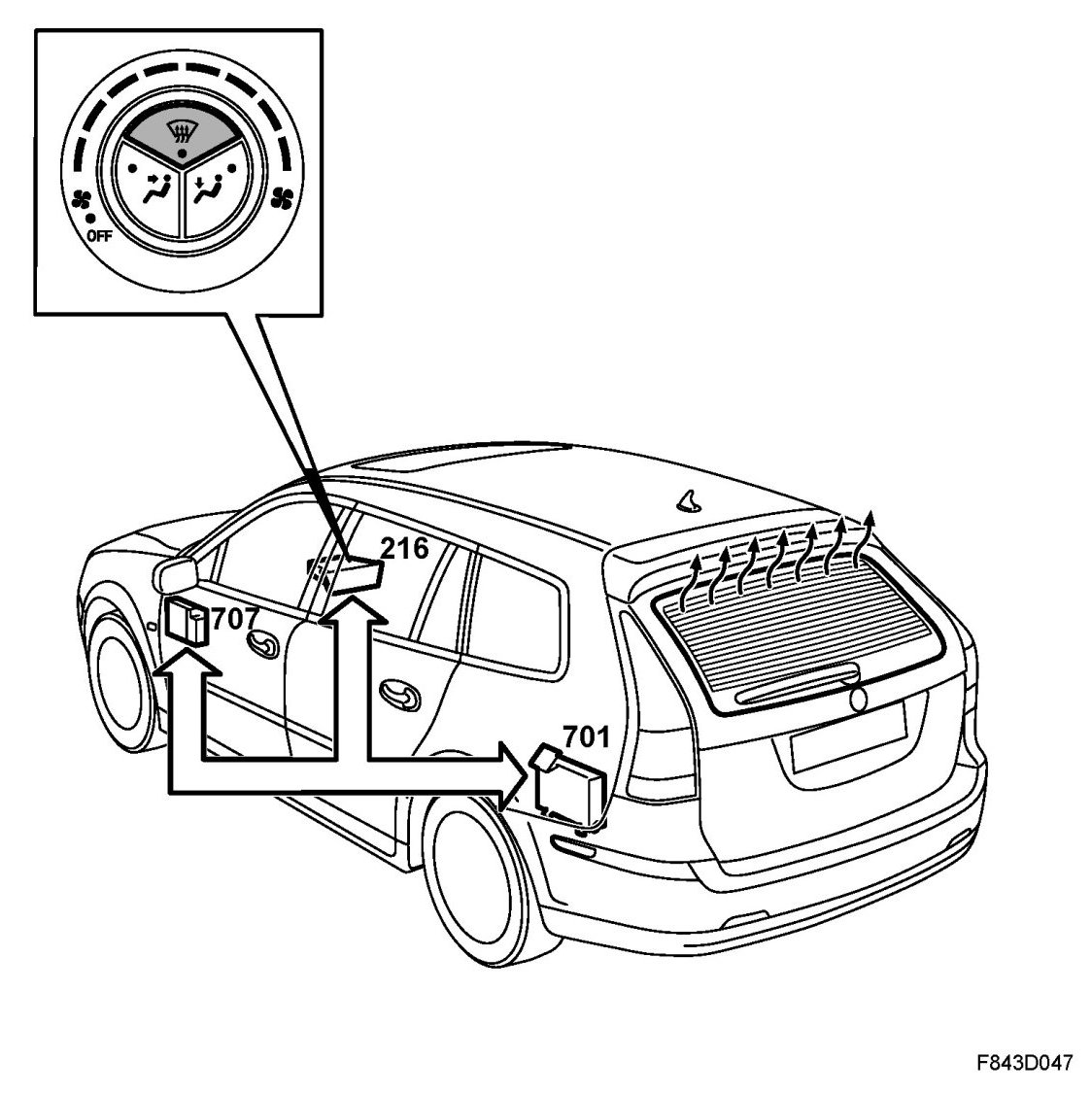 The electrically heated rear window is activated manually by pushing a button on the ACC panel or automatically by the ACC. In order to enable automatic activation the ACC must be configured for this using the diagnostic tool.