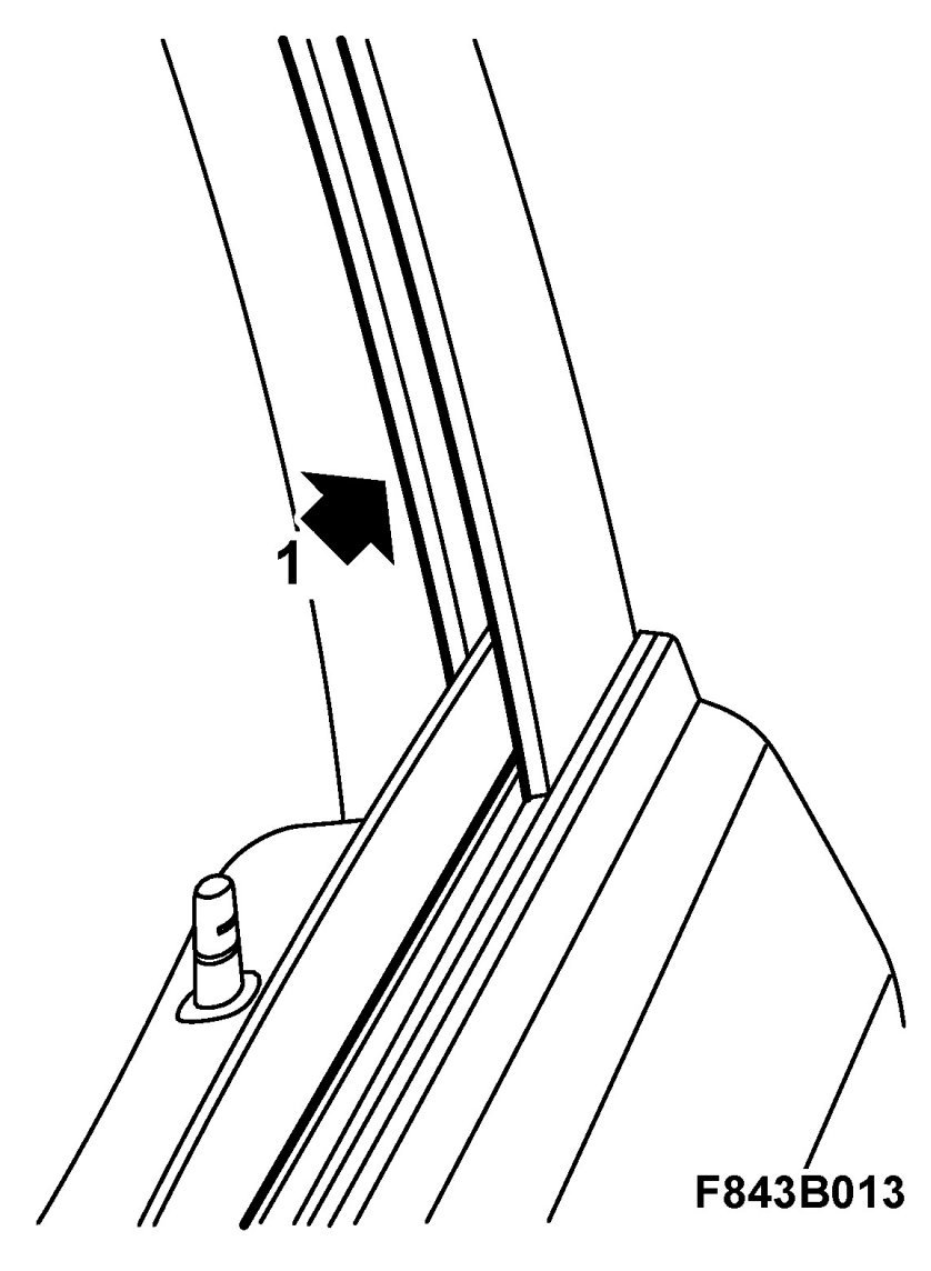 11. Check the outer and inner window seal (B). Check with the window down that the seal is not damaged or creased.