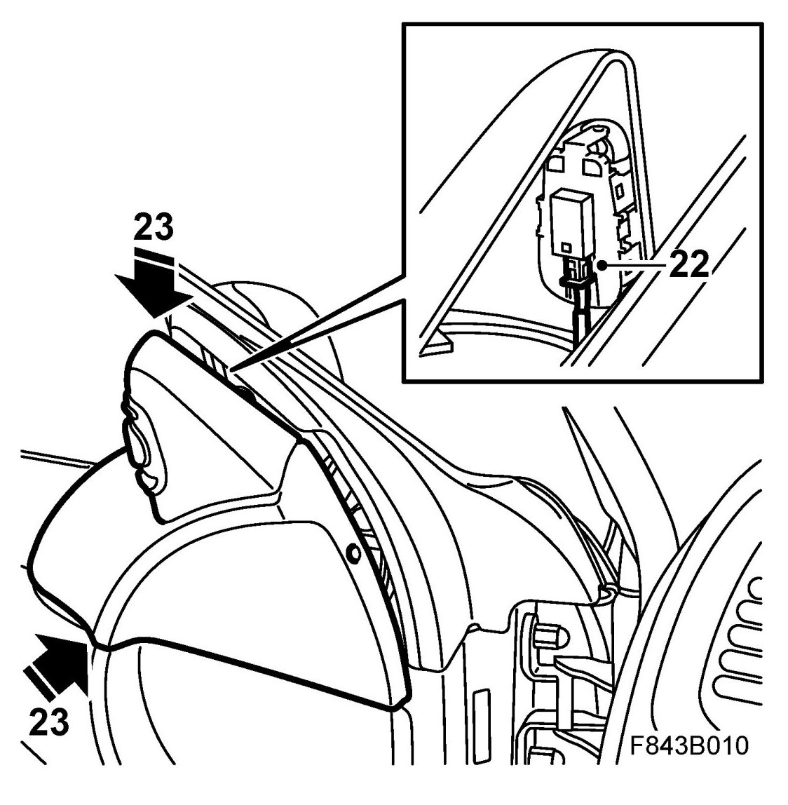 8. Reset the pinch protection by removing and fitting fuse F5 from the instrument panel electrical centre (IPEC) (applies to front door control module) or fuse 21 in the rear electrical centre (REC) (applies to rear door control module). Carry out pinch protection programming in accordance with WIS - Body - Doors and locks - Adjustment/Replacement - Calibration of pinch protection.