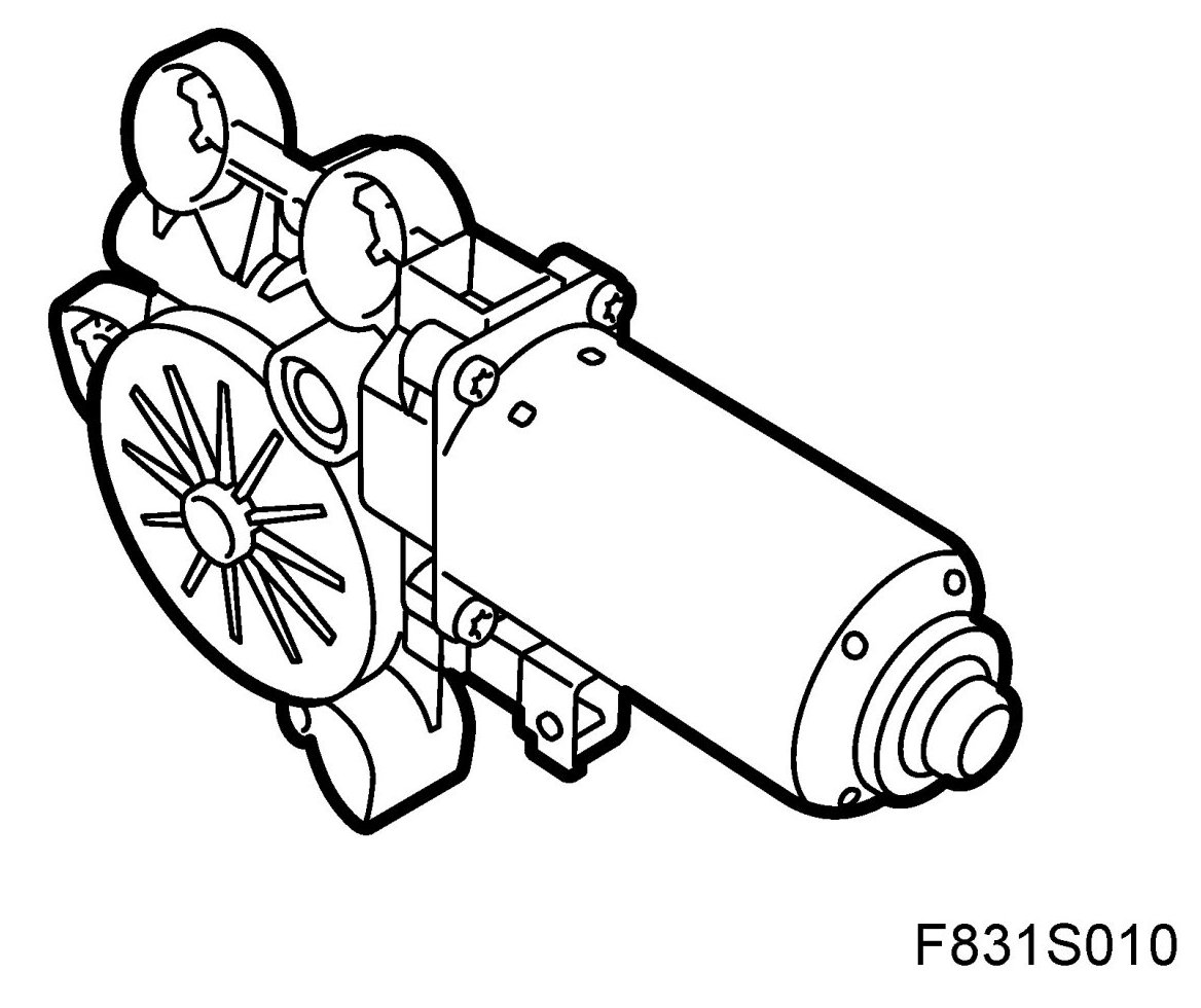 The electric window motor contains a 2-pole motor and worm gear. The polarity of the motor is reversed to run it in the opposite direction. In variants with pinch protection, the motor also has 2 Hall sensors that indicate the position of the motor. The Hall sensors are mounted by the motor shaft 90 degrees from each other. The motor shaft has a 2-pole rotor.