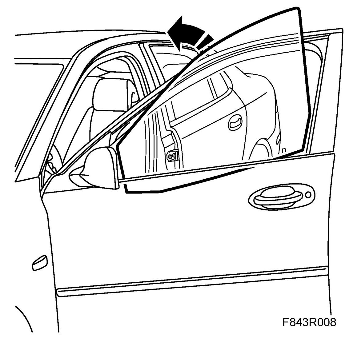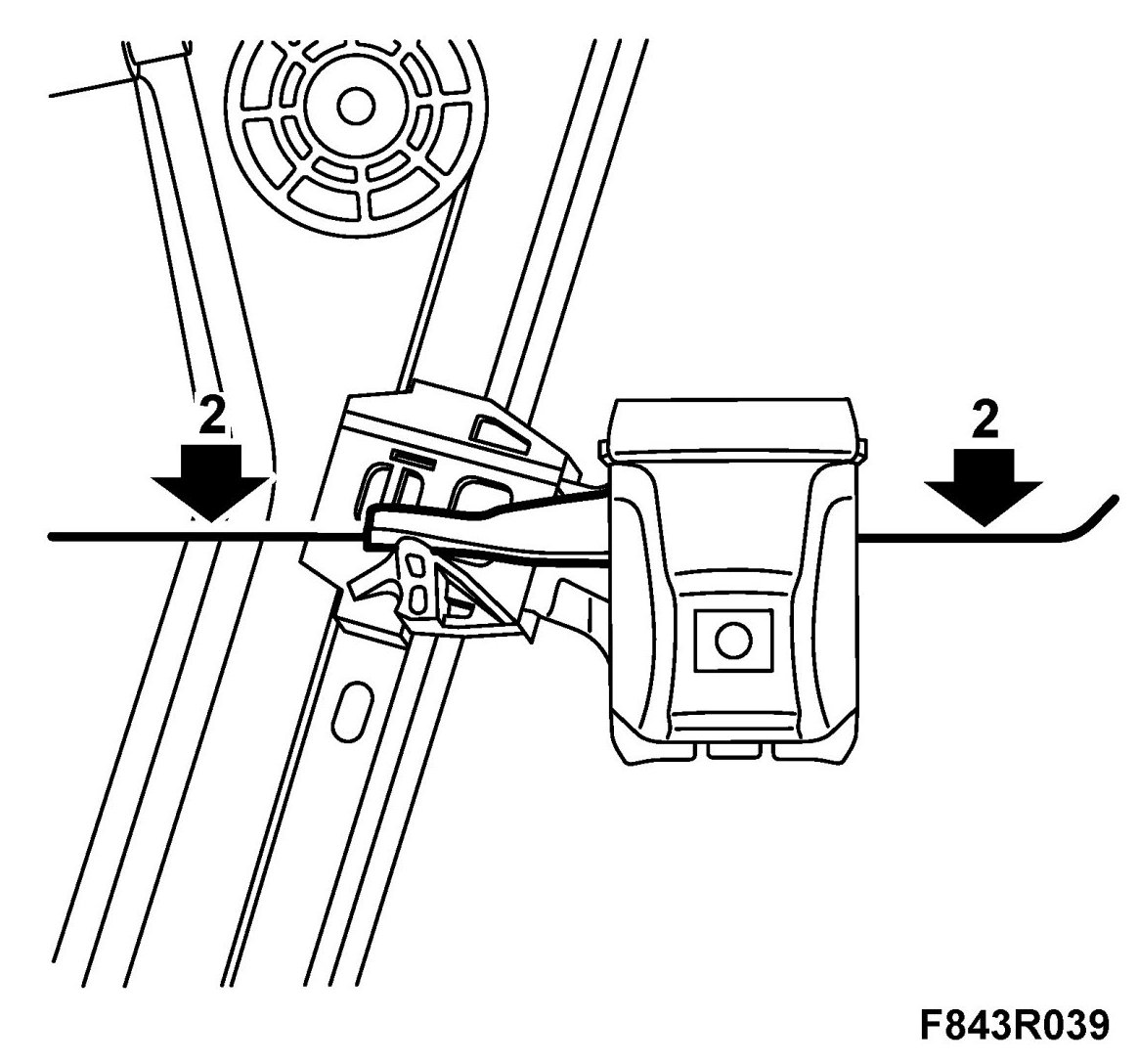 1. Insert the front edge of the window into the U-moulding. Angle in the rear edge so that it is located in the rear U-moulding. Make sure that the window is correctly seated in the channels by raising and lowering it.