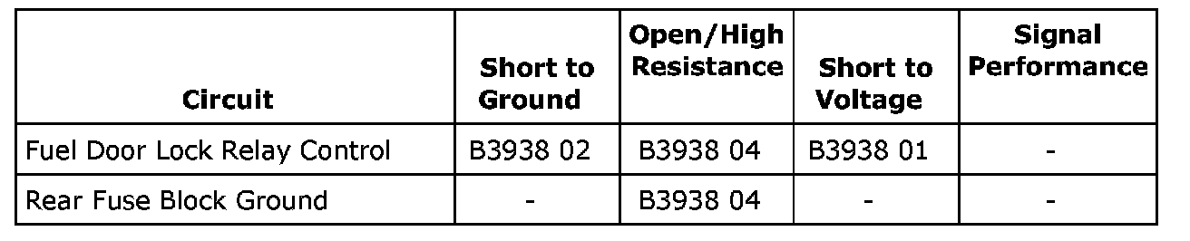 The locking and unlocking of the fuel door is a function of the power door lock system. The fuel door unlatch actuator shares the circuit with the door latch unlock control circuit. The body control module (BCM), upon receipt of a lock switch lock or unlock signal, will switch the appropriate door latch, as well as a fuel filler door unlatch actuator control circuits to B+ voltage. The opposing side of the door latch and fuel filler door unlatch actuator is connected to ground provided by the BCM through the other the door latch control circuits, along with the fuel filler door unlatch actuator, will lock or unlock as commanded.