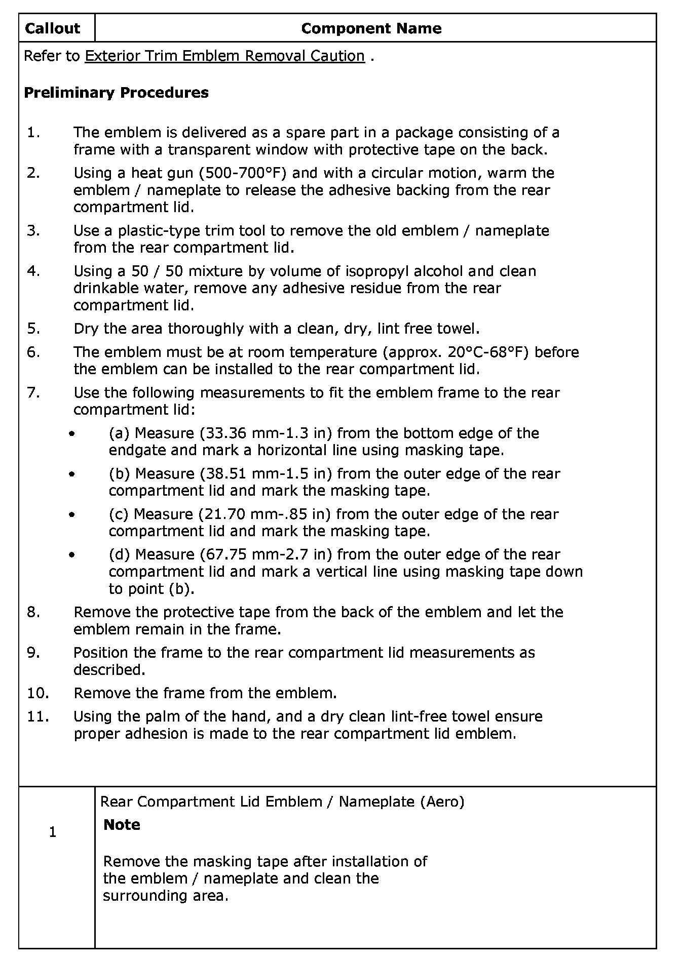 Rear Compartment Lid Emblem/Nameplate Replacement (Aero)