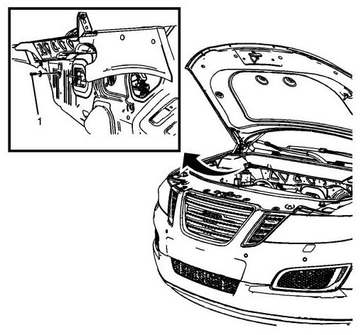 6. Within the engine compartment area remove the fastener (1) securing the HVAC module assembly to the vehicle body.