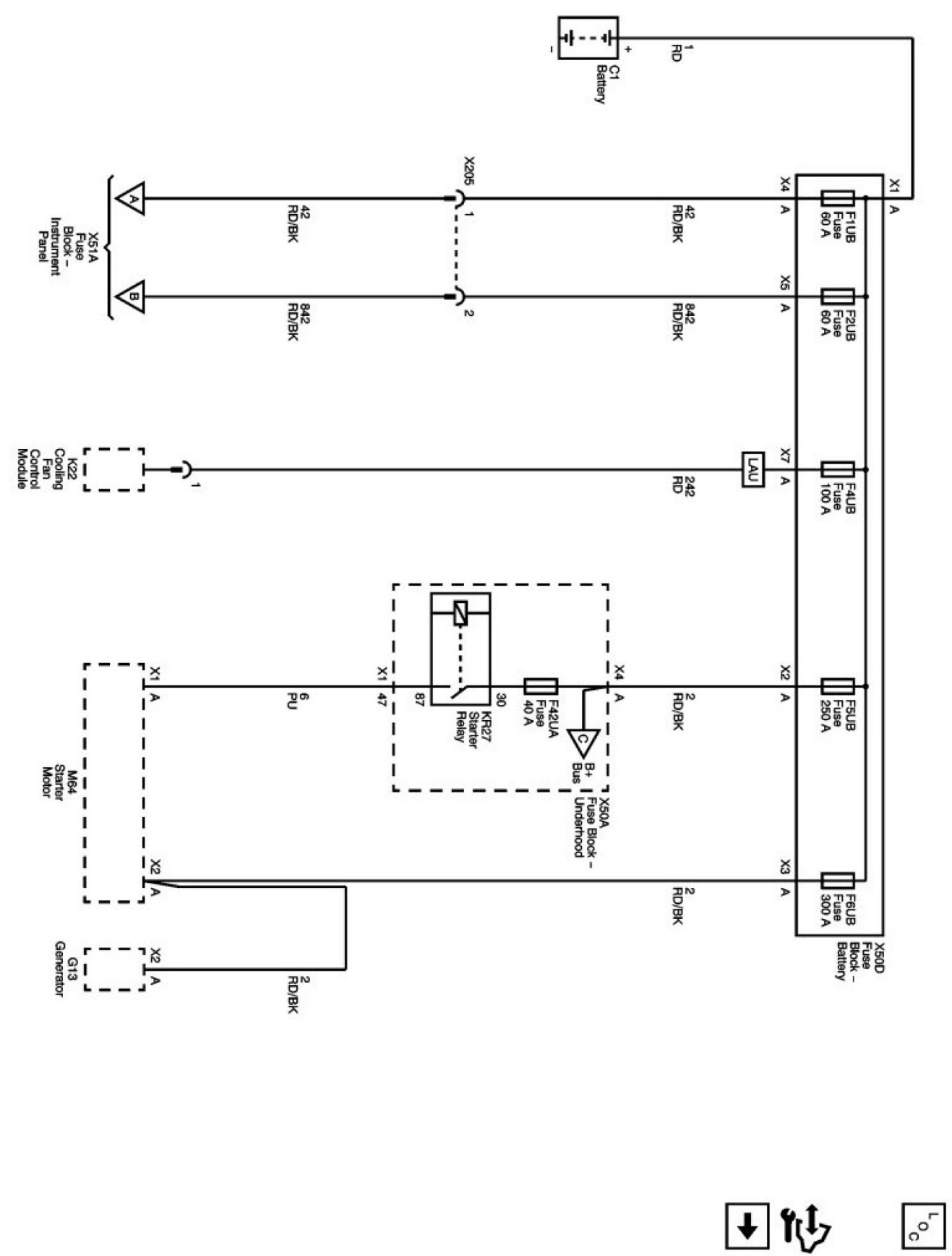 Power Supply Diagrams: The diagrams for the power supplies that may be feeding this system (+30, +15, +54, +X, and +B) ) can be found at Power and Ground Distribution diagrams. Electrical Diagrams