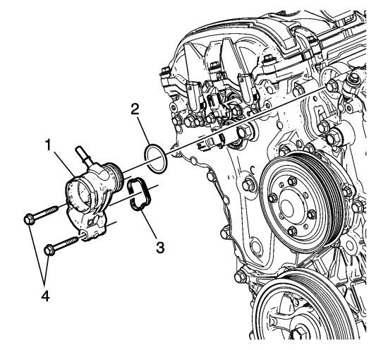 Install the NEW water outlet seals (2) and (3).
