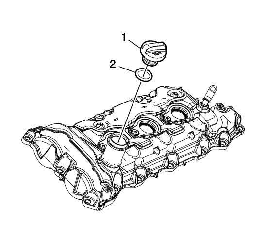 Remove the oil fill cap (1) and oil fill cap O-ring (2).