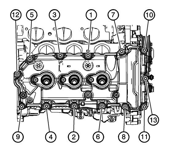 5. Tighten the right camshaft cover bolts in the sequence shown to 10 Nm (89 lb in).