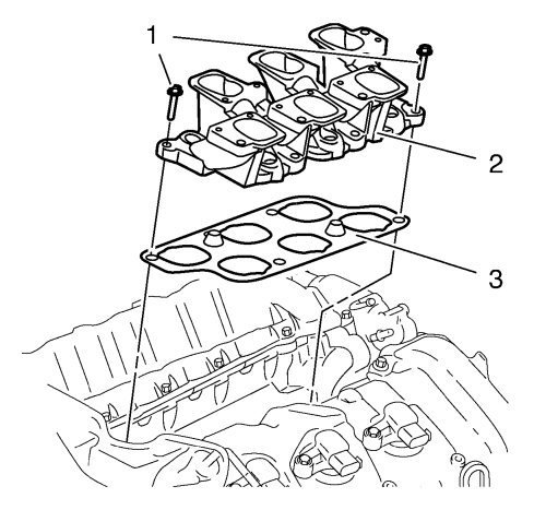 6. Remove the lower Intake manifold gasket (3).