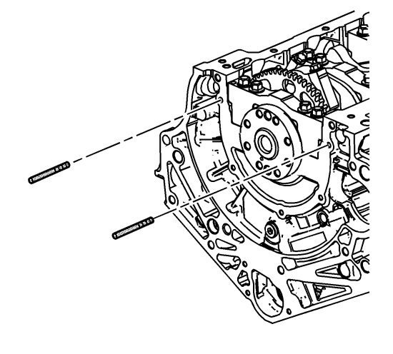 1. Install the 6 mm (0.236 in) guides from the EN-46109 pin set into the 2 crankshaft rear oil seal housing corner bolt holes of the engine block.