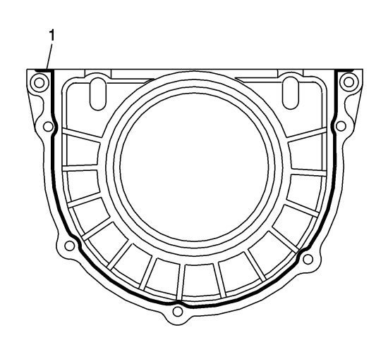 3. Place a 3 mm (0.118 in) bead of RTV sealant to the NEW crankshaft rear oil seal housing as shown (1). Refer to Adhesives, Fluids, Lubricants, and Sealers for recommended sealant.