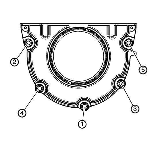Tighten the crankshaft rear oil seal housing bolts in sequence and tighten to 10 Nm (89 lb in).