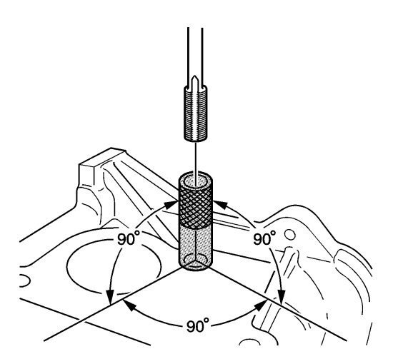 6. Spray cleaner into the tapped hole. Refer to Adhesives, Fluids, Lubricants, and Sealers for recommended cleaner.