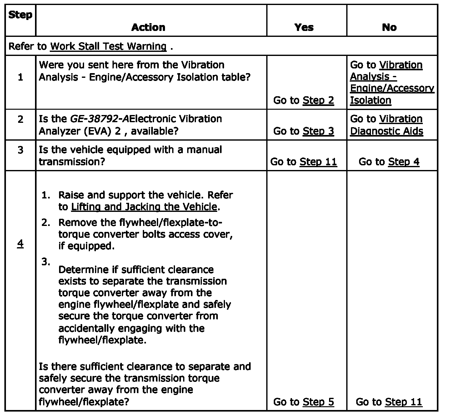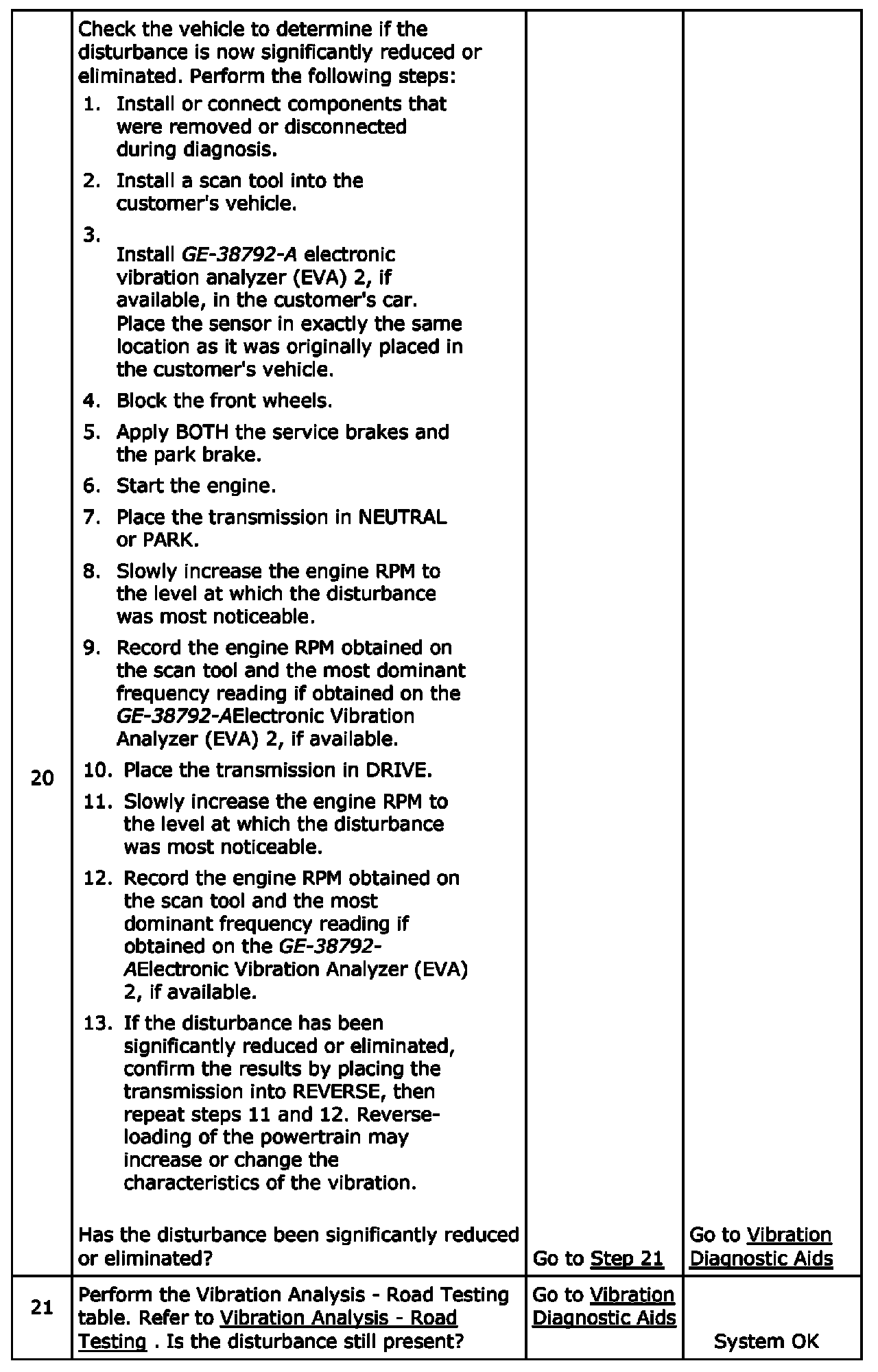 This step is designed to isolate the transmission from the engine to determine if the disturbance is related to the engine ONLY.