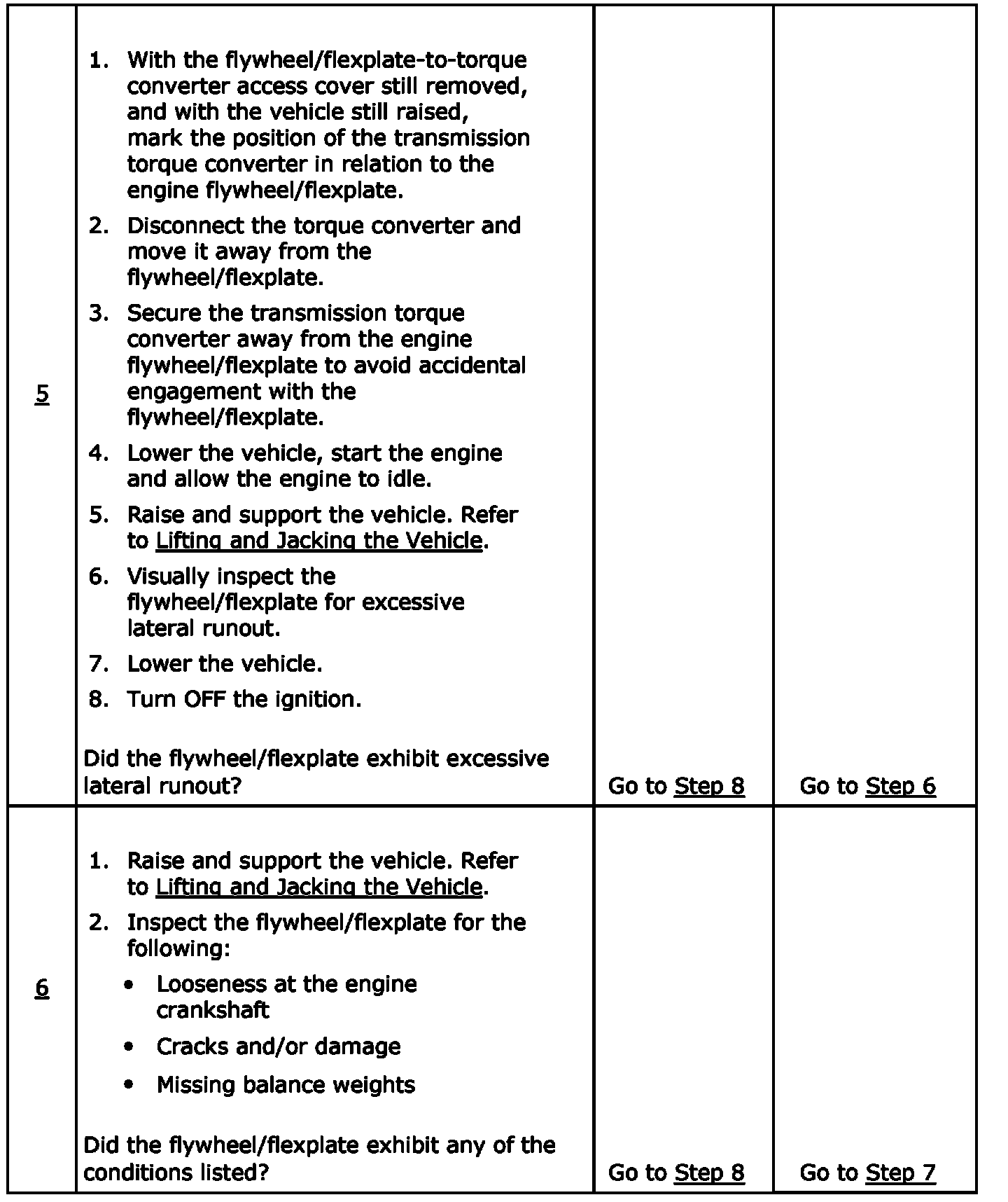 An engine flywheel/flexplate that has excessive lateral runout, when combined with the mass of the transmission torque converter, can produce a disturbance.