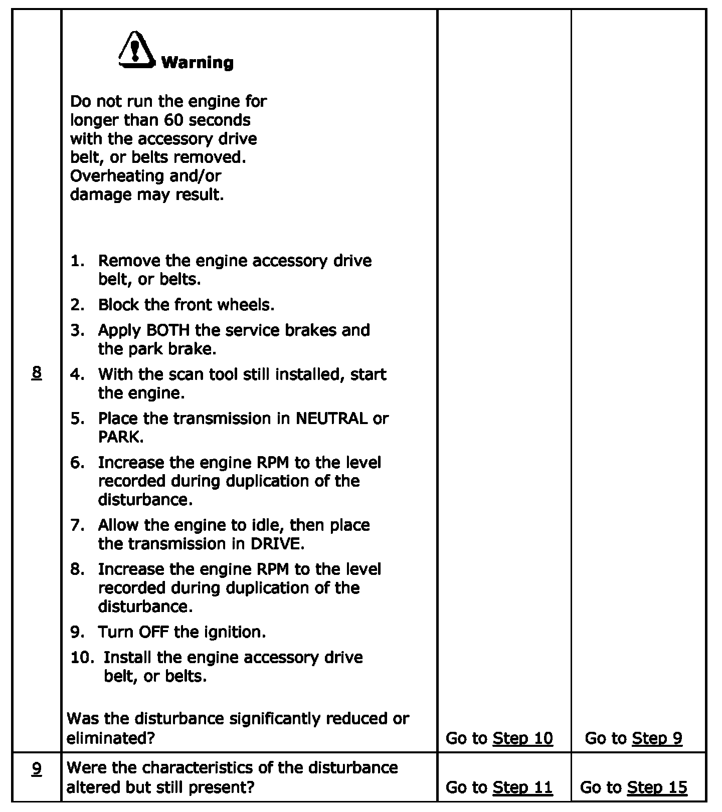 If a disturbance is still present, but the characteristics have NOT been altered, it is NOT likely that these component systems are acting as a transfer path for engine firing frequency or a first order engine disturbance.