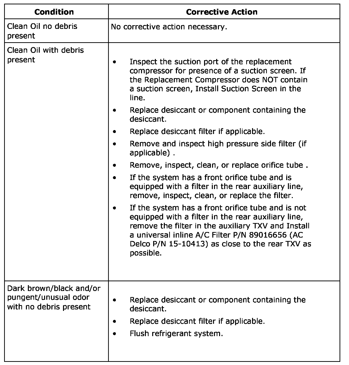 NOTE: To avoid repeat compressor failure, always inspect the condition of the refrigerant oil and take the appropriate corrective action before installing the replacement compressor.