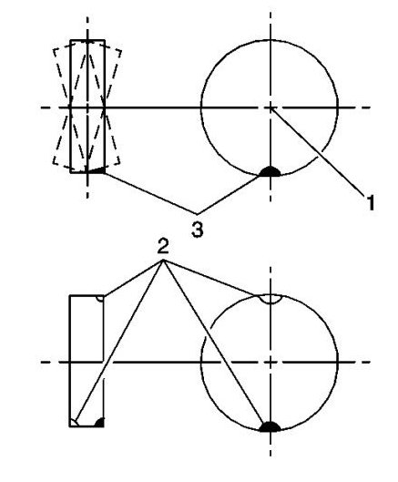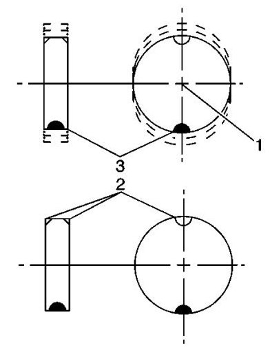 - When dynamic balancing, locate the wheel balance weights along the wheel centerline and the inboard edge of the inner wheel surface (2) at the positions specified by the wheel balancer.