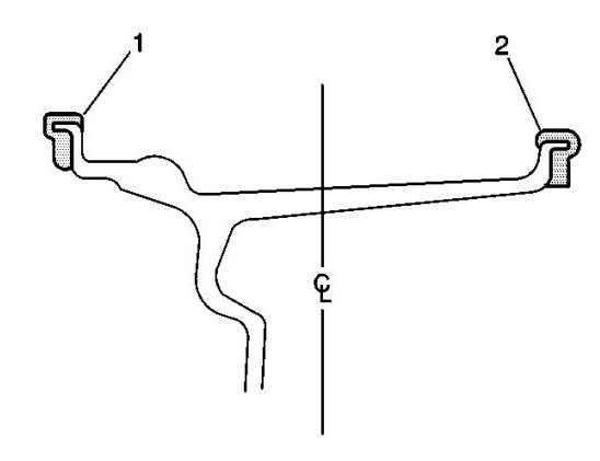 When static balancing, locate the wheel balance weights on the inboard flange (2) if only 28 g (1 oz) or less is called for. If more than 28 g (1 oz) is called for, split the weights as equally as possible between the inboard (2) and outboard (1) flanges.