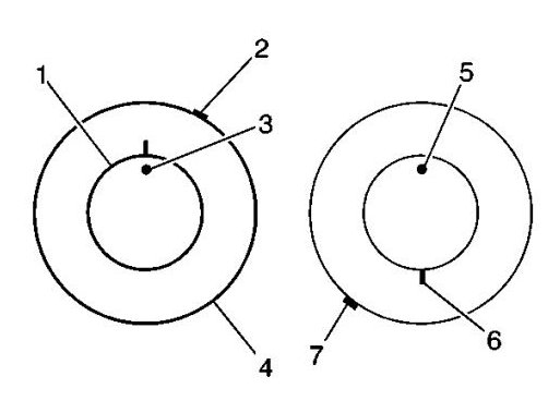8. If the clock location of the high spot remained at or near the original clock location of the high spot (7) and the assembly runout has NOT been reduced, the wheel is the major contributor to the assembly runout concern.