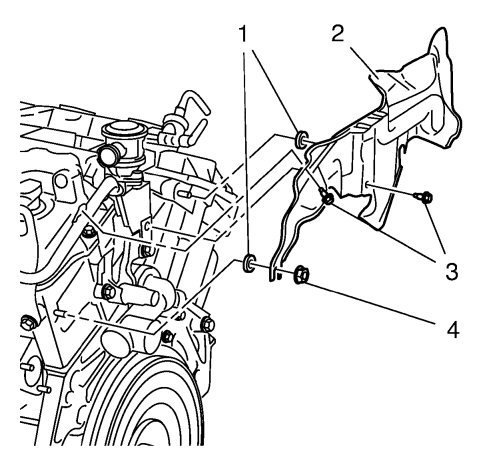 4. Install the turbocharger heat shield nut (4) and tighten to 50 Nm (37 lb ft).