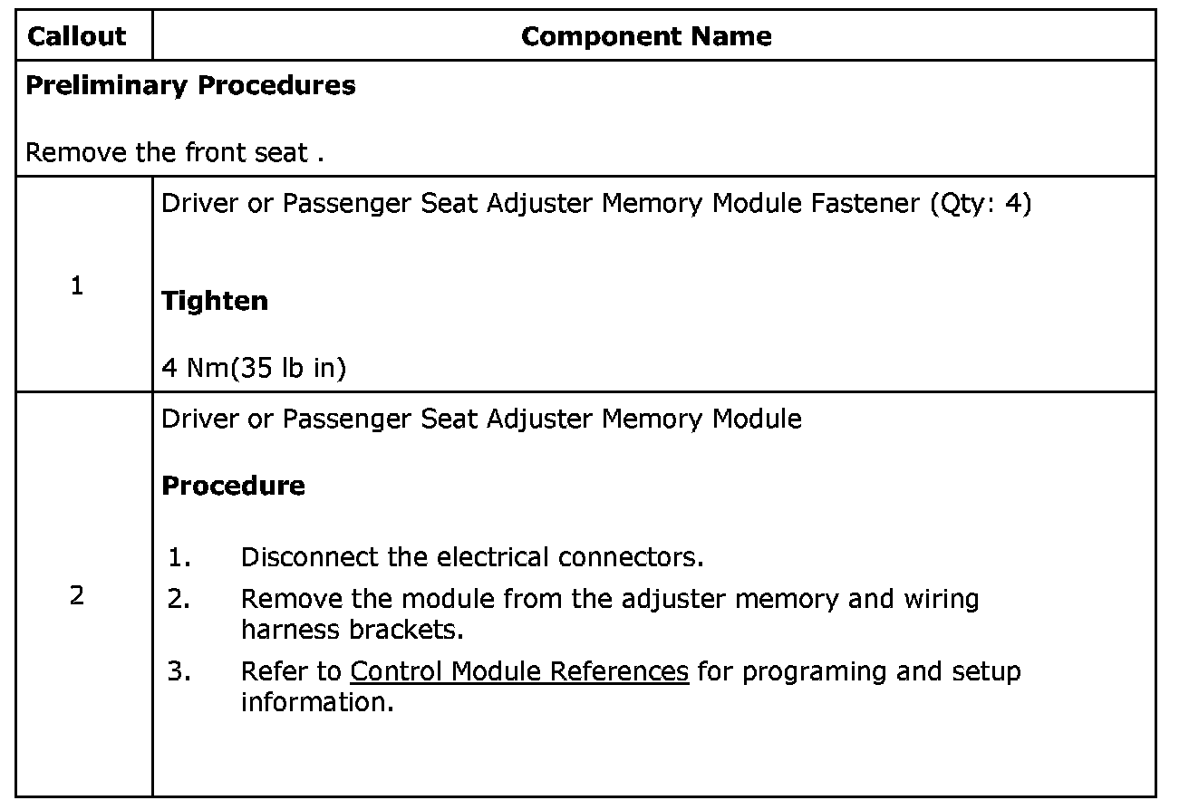 Driver or Passenger Seat Adjuster Memory Module Replacement