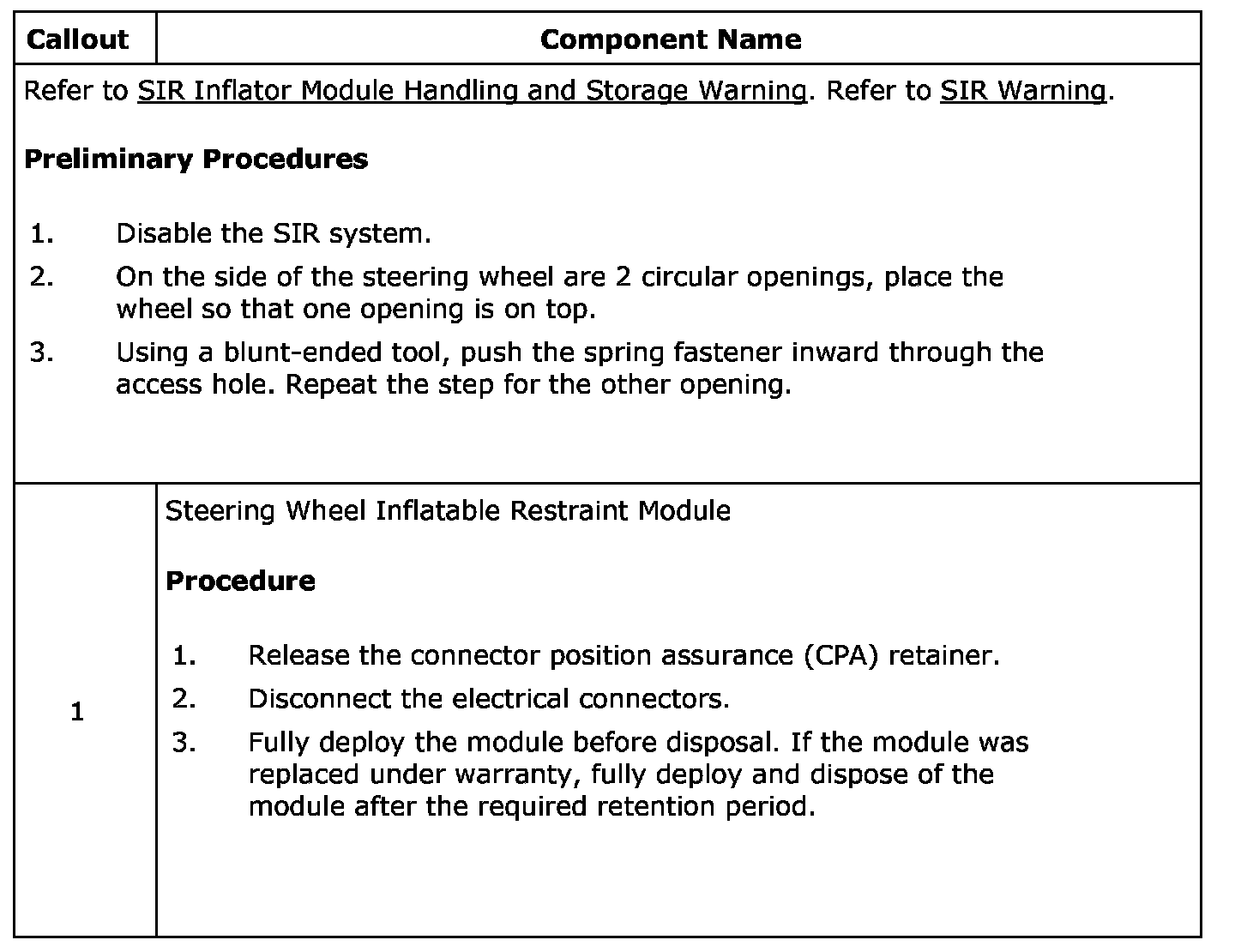 Steering Wheel Inflatable Restraint Module Replacement