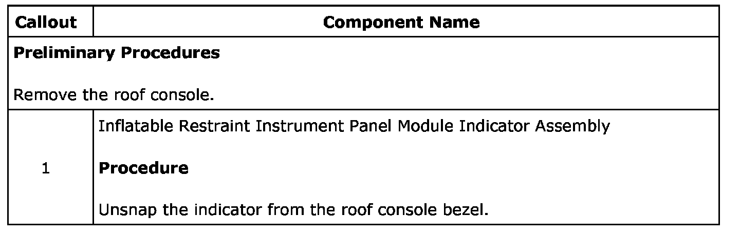 Inflatable Restraint Instrument Panel Module Indicator Replacement
