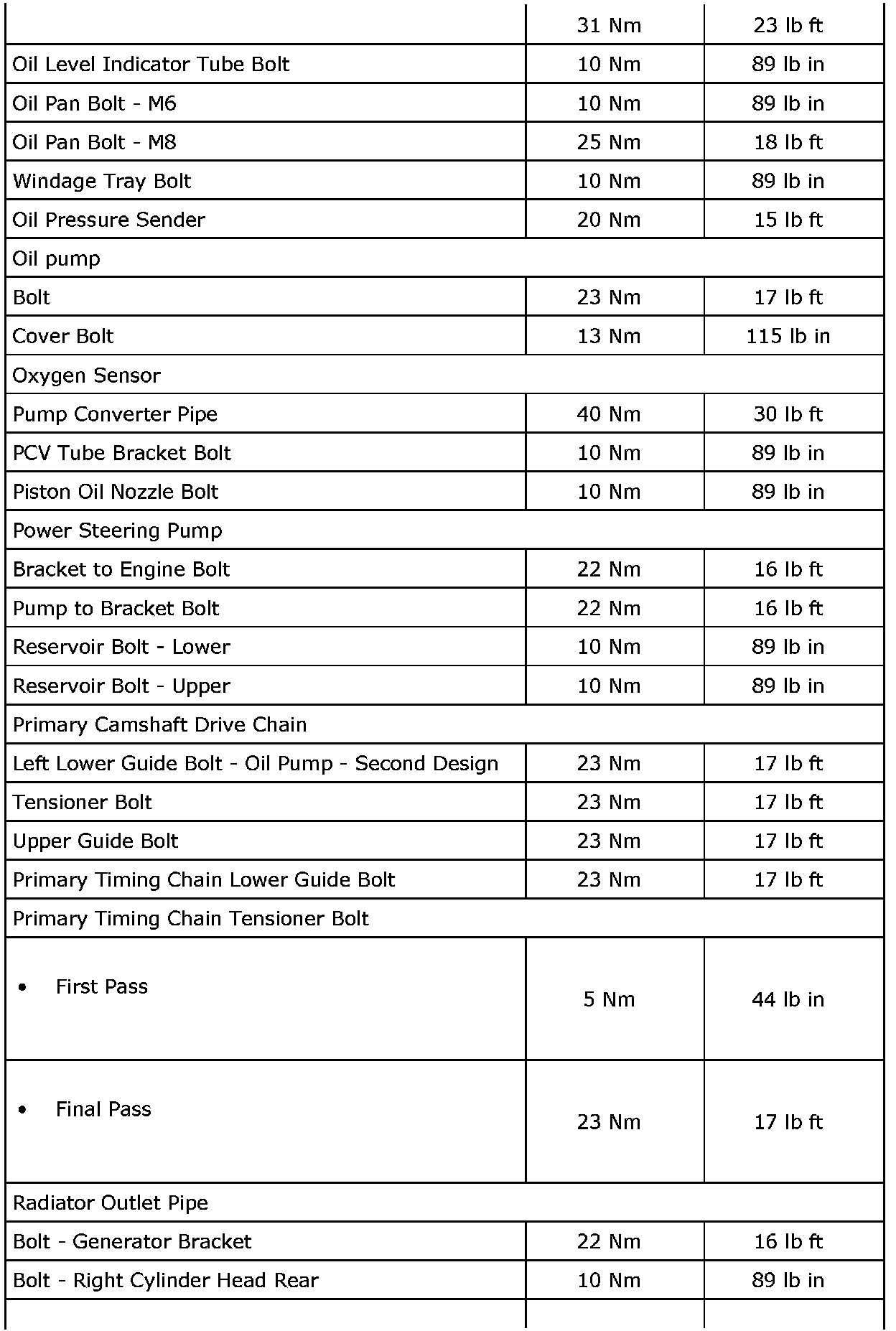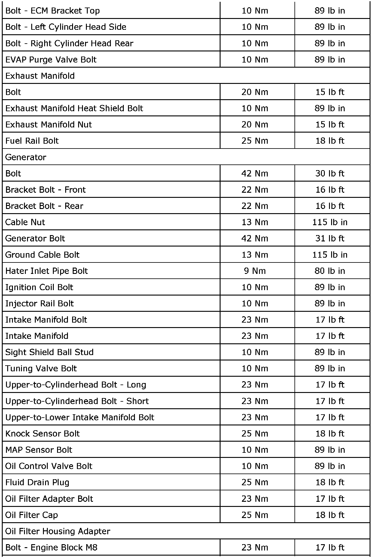 Fastener Tightening Specifications (LAU or LBW)
