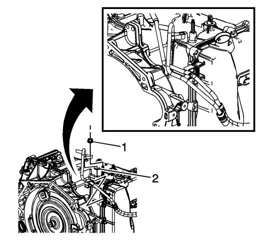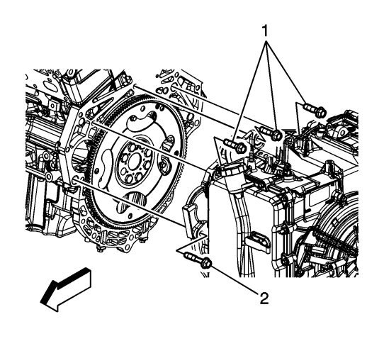 6. Install the transmission's upper bolt (1, 2) on the engine and tighten to 75 Nm (55 lb ft).